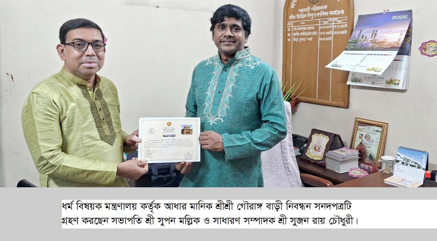 আধার মানিক শ্রীশ্রী গৌরাঙ্গ বাড়ী ধর্ম বিষয়ক মন্ত্রণালয় কর্তৃক
